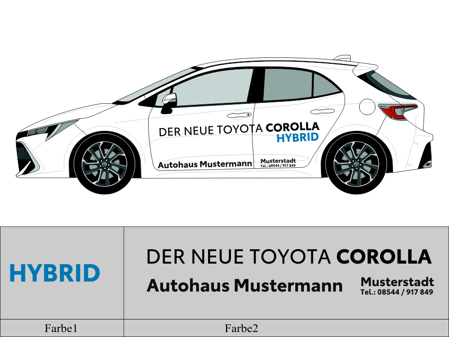 Die von uns verwendete Folie ist eine weiche PVC Folie für kurz bis mittelfristige Beschriftungen auf glatten und ebenen Untergründen ( ca. 2-4 Jahre)