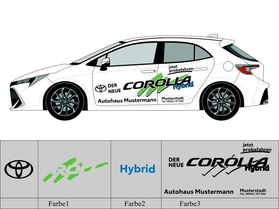 Die von uns verwendete Folie ist eine weiche PVC Folie für kurz bis mittelfristige Beschriftungen auf glatten und ebenen Untergründen ( ca. 2-4 Jahre)