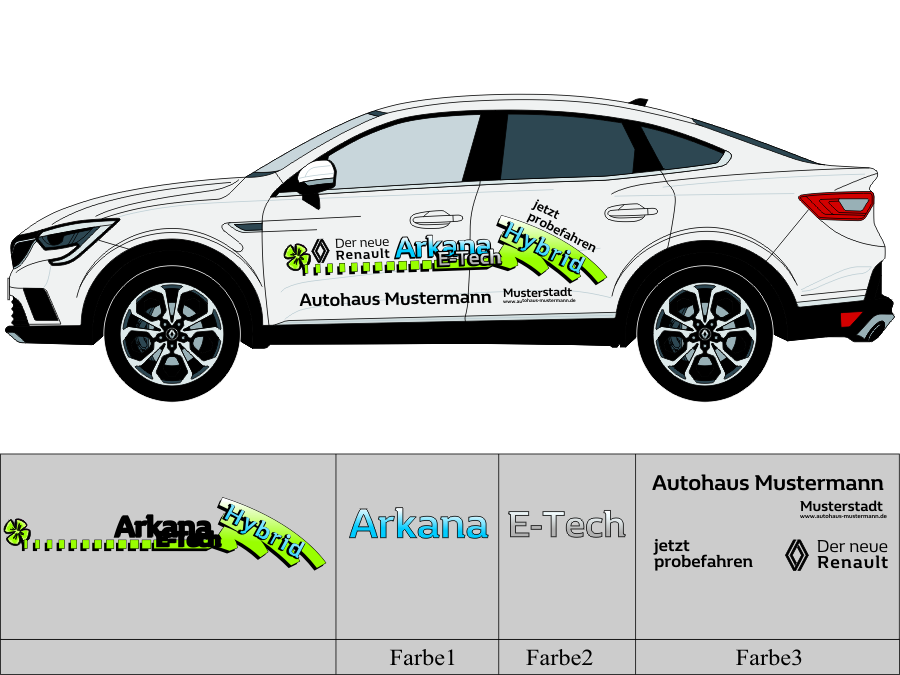 Die von uns verwendete Folie ist eine weiche PVC Folie für kurz bis mittelfristige Beschriftungen auf glatten und ebenen Untergründen ( ca. 2-4 Jahre)