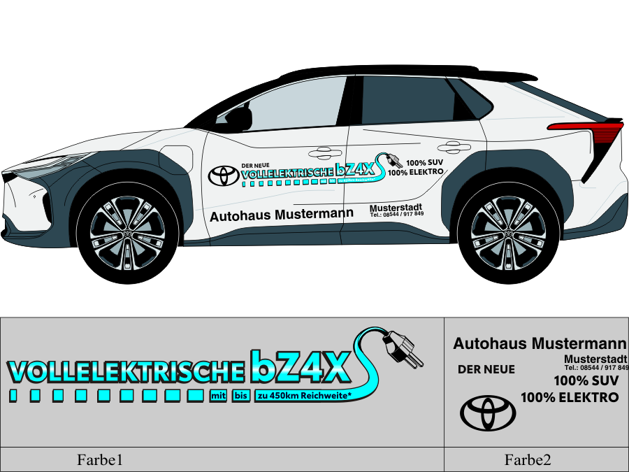 Die von uns verwendete Folie ist eine weiche PVC Folie für kurz bis mittelfristige Beschriftungen auf glatten und ebenen Untergründen ( ca. 2-4 Jahre)