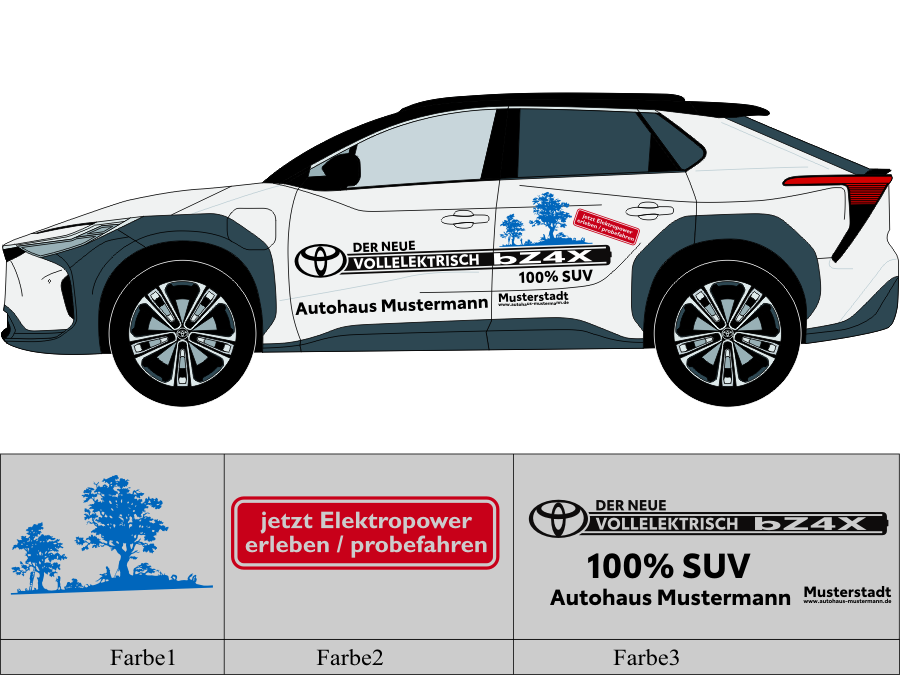 Die von uns verwendete Folie ist eine weiche PVC Folie für kurz bis mittelfristige Beschriftungen auf glatten und ebenen Untergründen ( ca. 2-4 Jahre)