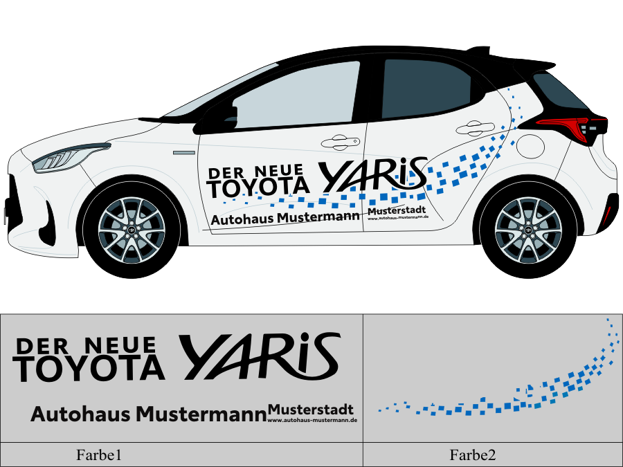 Die von uns verwendete Folie ist eine weiche PVC Folie für kurz bis mittelfristige Beschriftungen auf glatten und ebenen Untergründen ( ca. 2-4 Jahre)