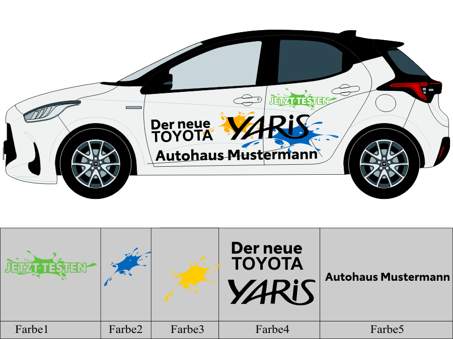 Die von uns verwendete Folie ist eine weiche PVC Folie für kurz bis mittelfristige Beschriftungen auf glatten und ebenen Untergründen ( ca. 2-4 Jahre)