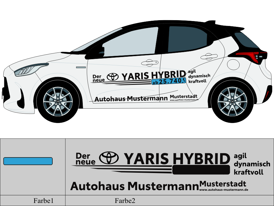 Die von uns verwendete Folie ist eine weiche PVC Folie für kurz bis mittelfristige Beschriftungen auf glatten und ebenen Untergründen ( ca. 2-4 Jahre)