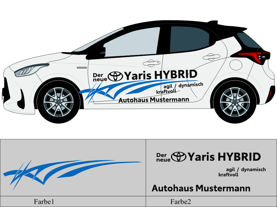 Die von uns verwendete Folie ist eine weiche PVC Folie für kurz bis mittelfristige Beschriftungen auf glatten und ebenen Untergründen ( ca. 2-4 Jahre)