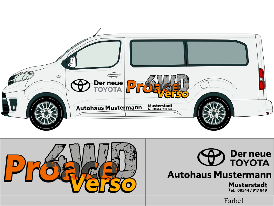 Die von uns verwendete Folie ist eine weiche PVC Folie für kurz bis mittelfristige Beschriftungen auf glatten und ebenen Untergründen ( ca. 2-4 Jahre)
