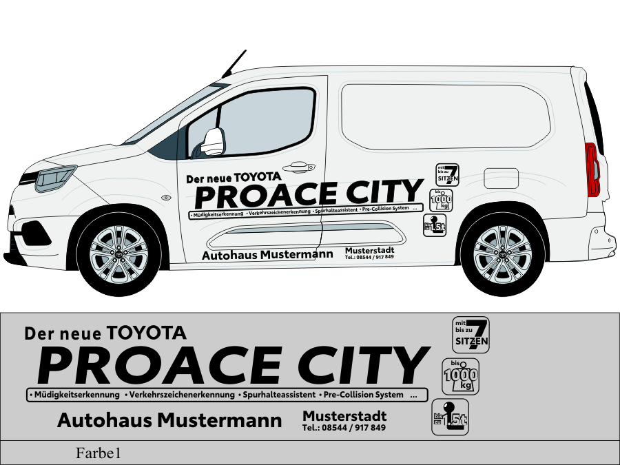 Die von uns verwendete Folie ist eine weiche PVC Folie für kurz bis mittelfristige Beschriftungen auf glatten und ebenen Untergründen ( ca. 2-4 Jahre)