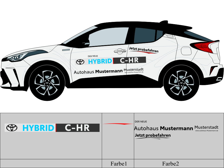 Die von uns verwendete Folie ist eine weiche PVC Folie für kurz bis mittelfristige Beschriftungen auf glatten und ebenen Untergründen ( ca. 2-4 Jahre)