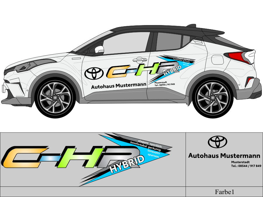 Die von uns verwendete Folie ist eine weiche PVC Folie für kurz bis mittelfristige Beschriftungen auf glatten und ebenen Untergründen ( ca. 2-4 Jahre)