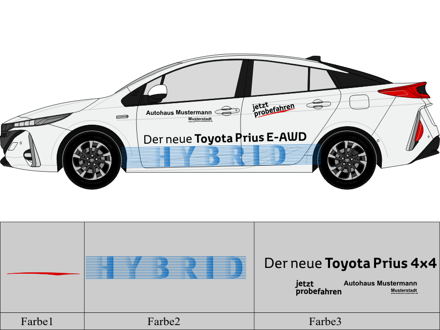 Die von uns verwendete Folie ist eine weiche PVC Folie für kurz bis mittelfristige Beschriftungen auf glatten und ebenen Untergründen ( ca. 2-4 Jahre)