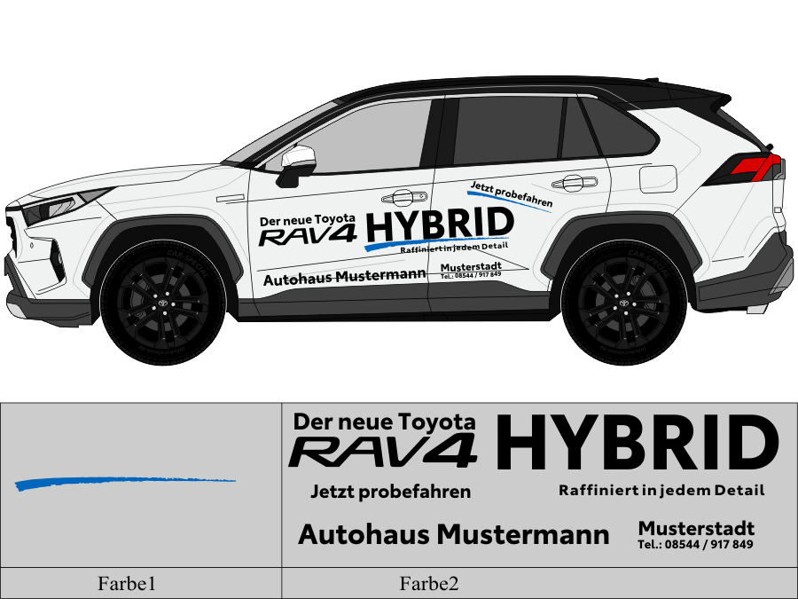 Die von uns verwendete Folie ist eine weiche PVC Folie für kurz bis mittelfristige Beschriftungen auf glatten und ebenen Untergründen ( ca. 2-4 Jahre)