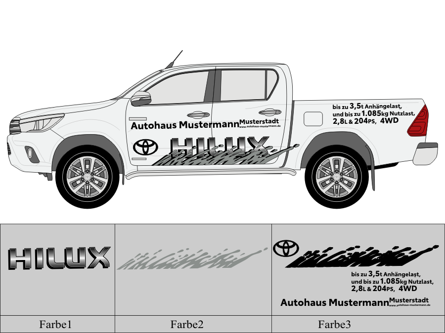 Die von uns verwendete Folie ist eine weiche PVC Folie für kurz bis mittelfristige Beschriftungen auf glatten und ebenen Untergründen ( ca. 2-4 Jahre)