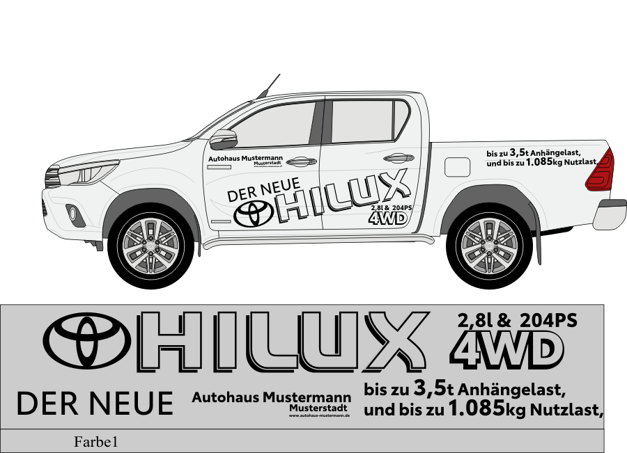 Die von uns verwendete Folie ist eine weiche PVC Folie für kurz bis mittelfristige Beschriftungen auf glatten und ebenen Untergründen ( ca. 2-4 Jahre)