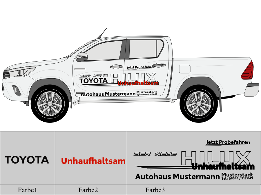 Die von uns verwendete Folie ist eine weiche PVC Folie für kurz bis mittelfristige Beschriftungen auf glatten und ebenen Untergründen ( ca. 2-4 Jahre)