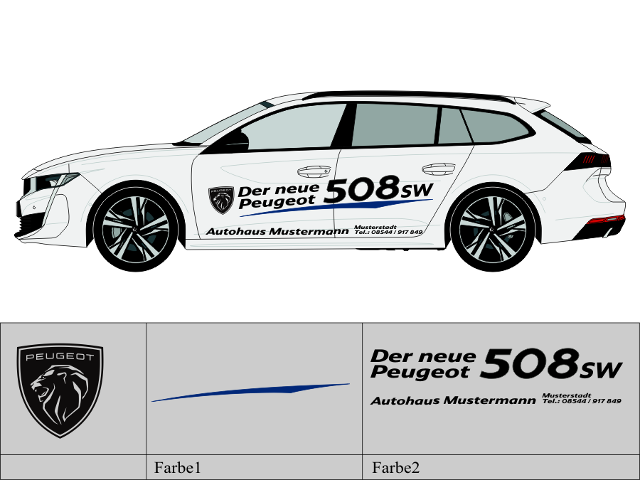 Die von uns verwendete Folie ist eine weiche PVC Folie für kurz bis mittelfristige Beschriftungen auf glatten und ebenen Untergründen ( ca. 2-4 Jahre)
