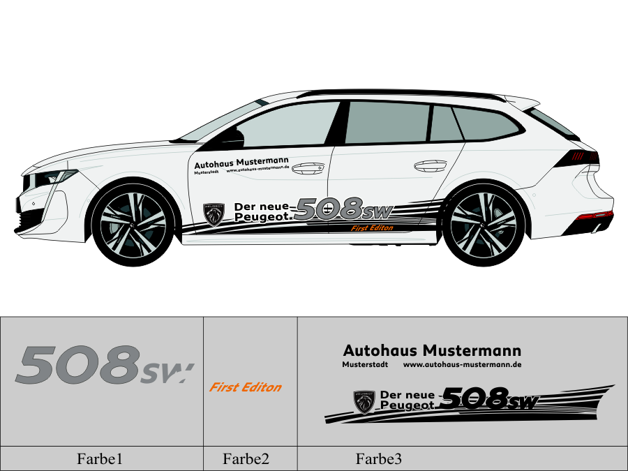 Die von uns verwendete Folie ist eine weiche PVC Folie für kurz bis mittelfristige Beschriftungen auf glatten und ebenen Untergründen ( ca. 2-4 Jahre)