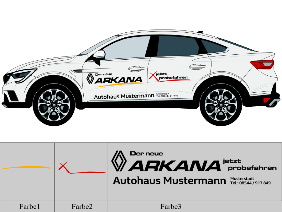 Die von uns verwendete Folie ist eine weiche PVC Folie für kurz bis mittelfristige Beschriftungen auf glatten und ebenen Untergründen ( ca. 2-4 Jahre)