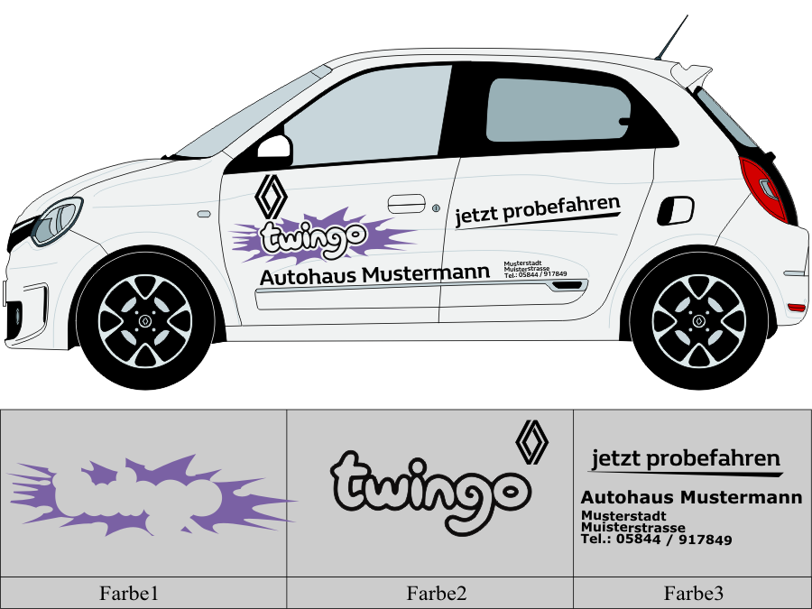 Die von uns verwendete Folie ist eine weiche PVC Folie für kurz bis mittelfristige Beschriftungen auf glatten und ebenen Untergründen ( ca. 2-4 Jahre)