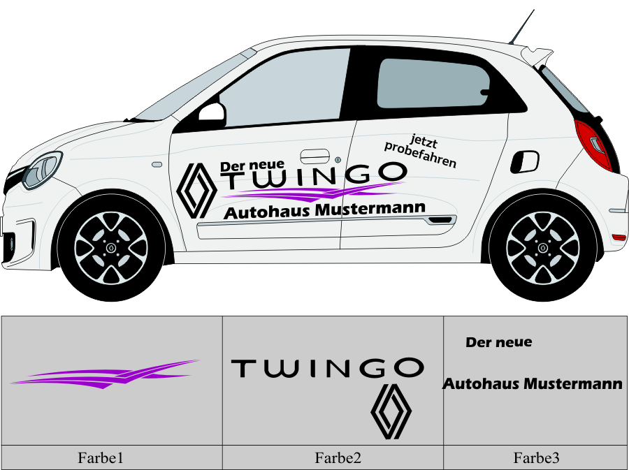 Die von uns verwendete Folie ist eine weiche PVC Folie für kurz bis mittelfristige Beschriftungen auf glatten und ebenen Untergründen ( ca. 2-4 Jahre)