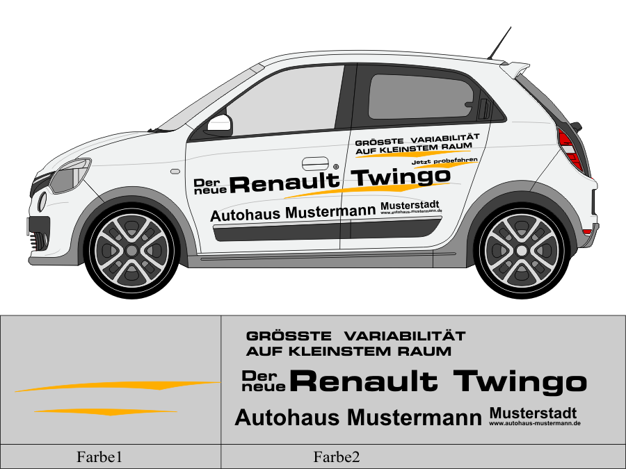 Die von uns verwendete Folie ist eine weiche PVC Folie für kurz bis mittelfristige Beschriftungen auf glatten und ebenen Untergründen ( ca. 2-4 Jahre)