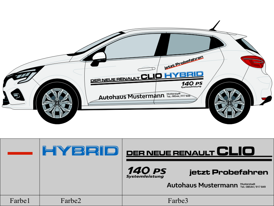 Die von uns verwendete Folie ist eine weiche PVC Folie für kurz bis mittelfristige Beschriftungen auf glatten und ebenen Untergründen ( ca. 2-4 Jahre)
