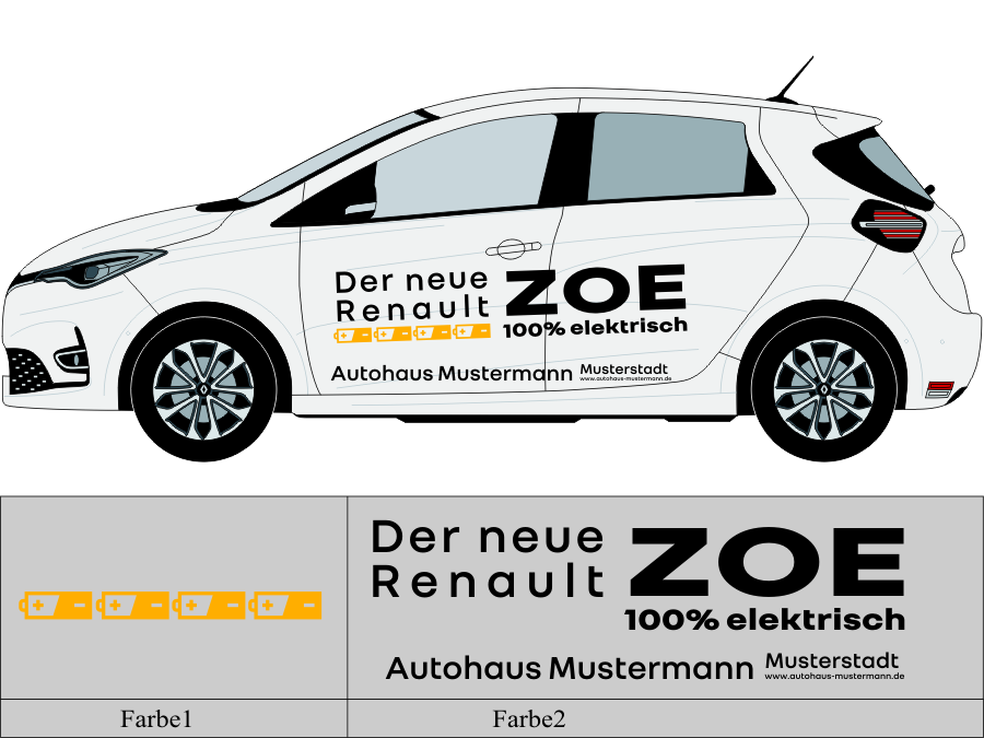 Die von uns verwendete Folie ist eine weiche PVC Folie für kurz bis mittelfristige Beschriftungen auf glatten und ebenen Untergründen ( ca. 2-4 Jahre)