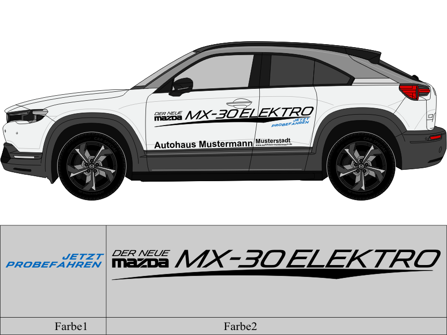 Die von uns verwendete Folie ist eine weiche PVC Folie für kurz bis mittelfristige Beschriftungen auf glatten und ebenen Untergründen ( ca. 2-4 Jahre)