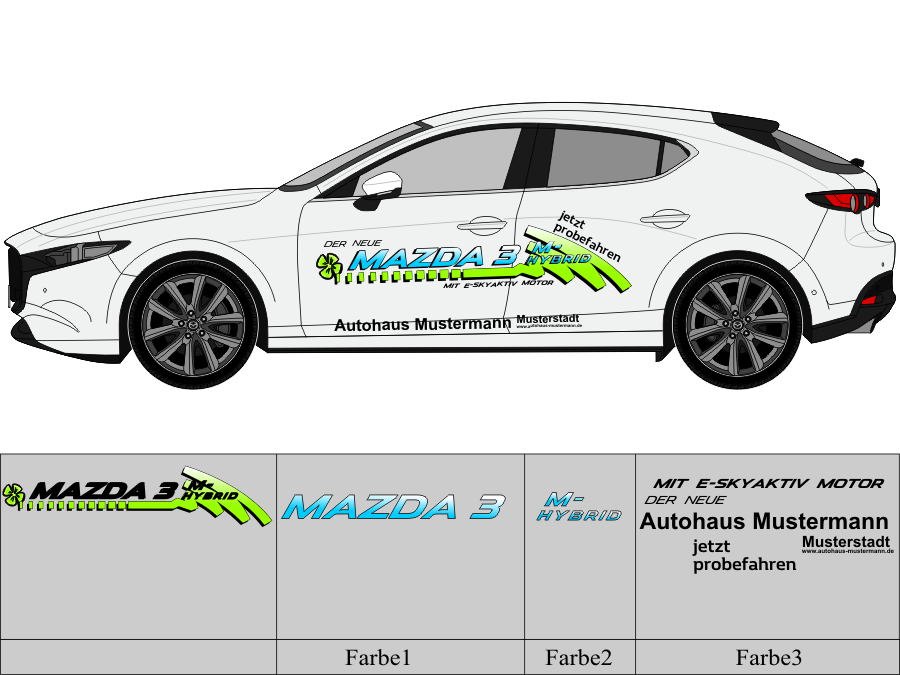 Die von uns verwendete Folie ist eine weiche PVC Folie für kurz bis mittelfristige Beschriftungen auf glatten und ebenen Untergründen ( ca. 2-4 Jahre)