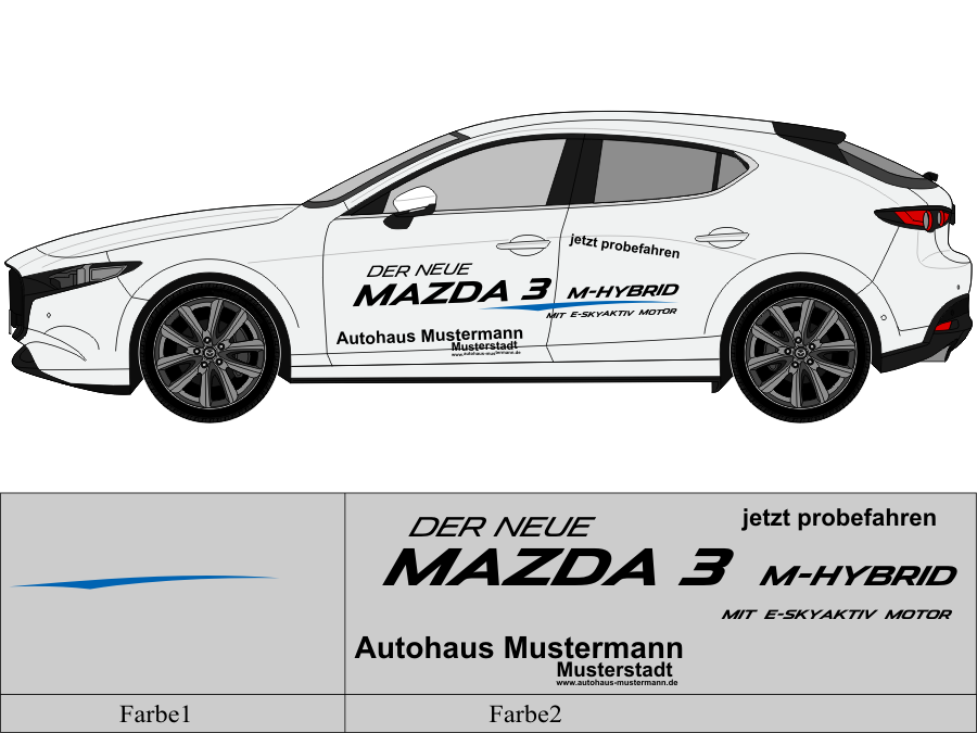 Die von uns verwendete Folie ist eine weiche PVC Folie für kurz bis mittelfristige Beschriftungen auf glatten und ebenen Untergründen ( ca. 2-4 Jahre)