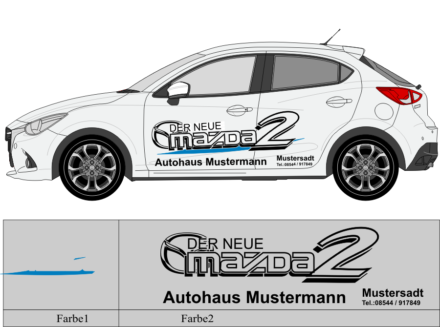 Die von uns verwendete Folie ist eine weiche PVC Folie für kurz bis mittelfristige Beschriftungen auf glatten und ebenen Untergründen ( ca. 2-4 Jahre)
