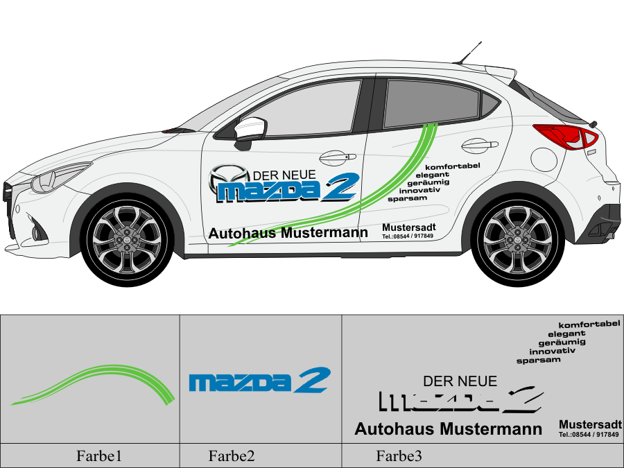 Die von uns verwendete Folie ist eine weiche PVC Folie für kurz bis mittelfristige Beschriftungen auf glatten und ebenen Untergründen ( ca. 2-4 Jahre)