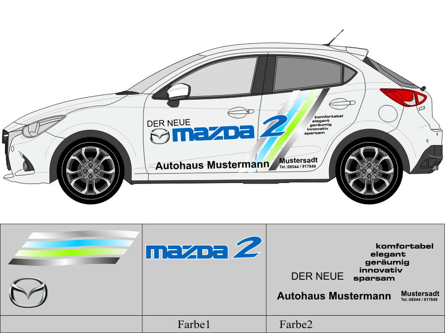 Die von uns verwendete Folie ist eine weiche PVC Folie für kurz bis mittelfristige Beschriftungen auf glatten und ebenen Untergründen ( ca. 2-4 Jahre)