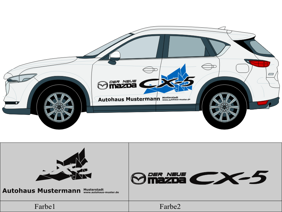 Die von uns verwendete Folie ist eine weiche PVC Folie für kurz bis mittelfristige Beschriftungen auf glatten und ebenen Untergründen ( ca. 2-4 Jahre)