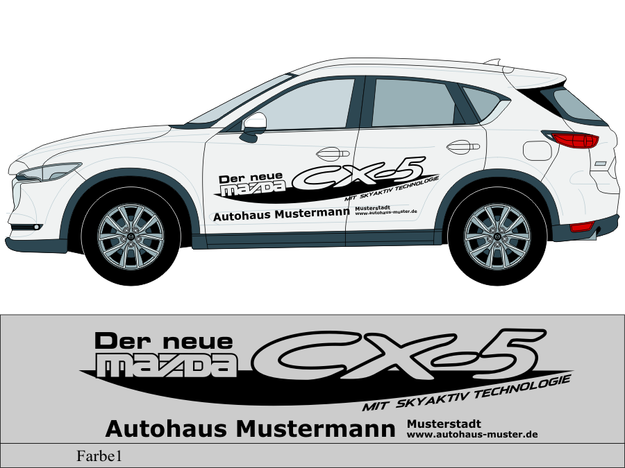Die von uns verwendete Folie ist eine weiche PVC Folie für kurz bis mittelfristige Beschriftungen auf glatten und ebenen Untergründen ( ca. 2-4 Jahre)