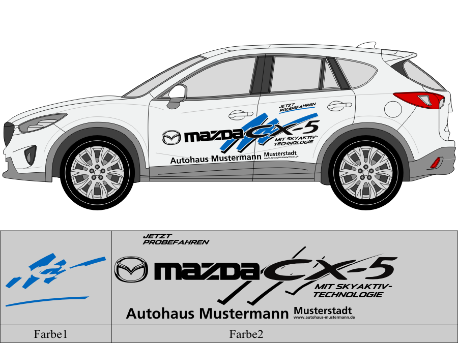 Die von uns verwendete Folie ist eine weiche PVC Folie für kurz bis mittelfristige Beschriftungen auf glatten und ebenen Untergründen ( ca. 2-4 Jahre)