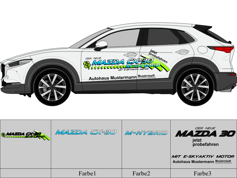 Die von uns verwendete Folie ist eine weiche PVC Folie für kurz bis mittelfristige Beschriftungen auf glatten und ebenen Untergründen ( ca. 2-4 Jahre)