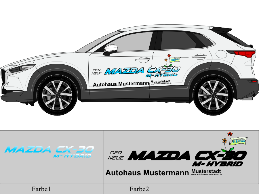 Die von uns verwendete Folie ist eine weiche PVC Folie für kurz bis mittelfristige Beschriftungen auf glatten und ebenen Untergründen ( ca. 2-4 Jahre)