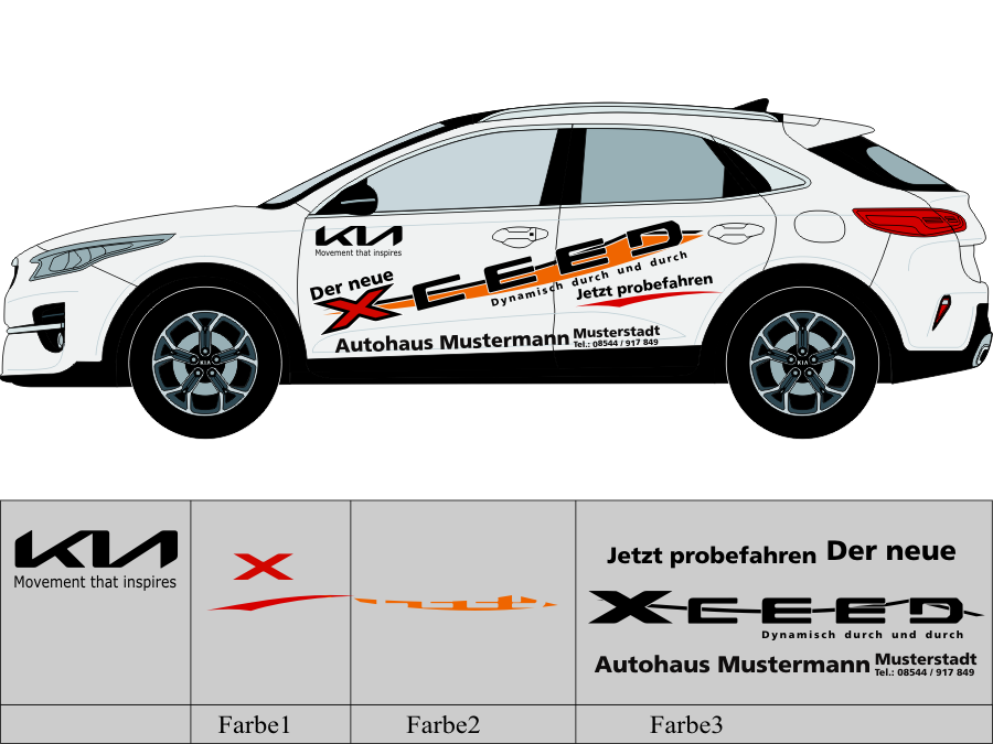 Die von uns verwendete Folie ist eine weiche PVC Folie für kurz bis mittelfristige Beschriftungen auf glatten und ebenen Untergründen ( ca. 2-4 Jahre)