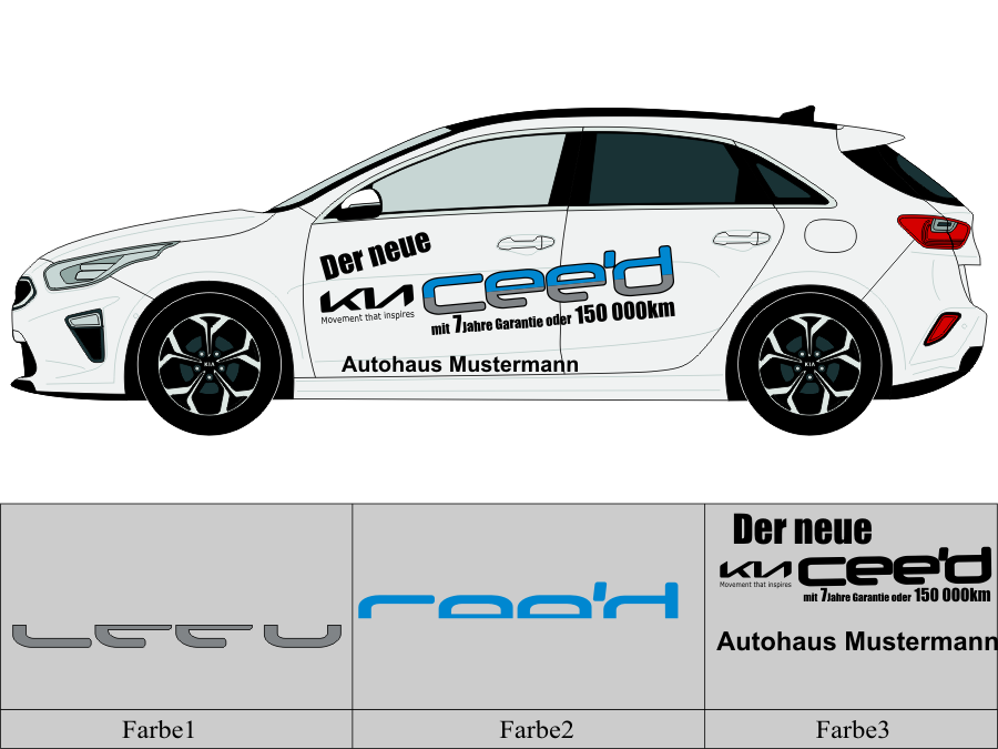 Die von uns verwendete Folie ist eine weiche PVC Folie für kurz bis mittelfristige Beschriftungen auf glatten und ebenen Untergründen ( ca. 2-4 Jahre)