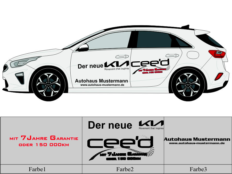Die von uns verwendete Folie ist eine weiche PVC Folie für kurz bis mittelfristige Beschriftungen auf glatten und ebenen Untergründen ( ca. 2-4 Jahre)