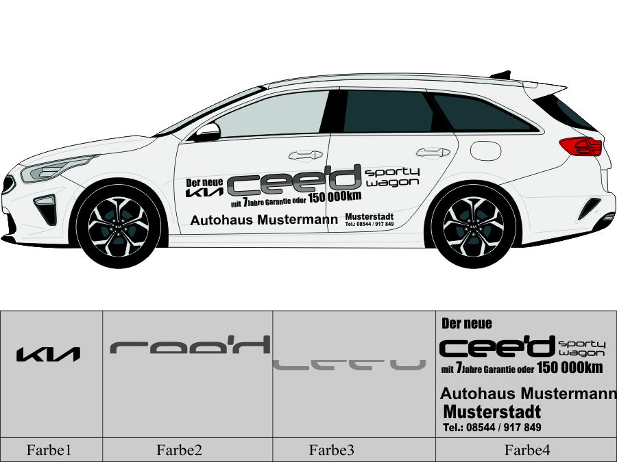 Die von uns verwendete Folie ist eine weiche PVC Folie für kurz bis mittelfristige Beschriftungen auf glatten und ebenen Untergründen ( ca. 2-4 Jahre)