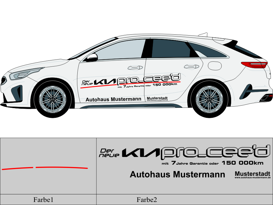 Die von uns verwendete Folie ist eine weiche PVC Folie für kurz bis mittelfristige Beschriftungen auf glatten und ebenen Untergründen ( ca. 2-4 Jahre)
