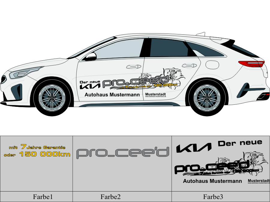 Die von uns verwendete Folie ist eine weiche PVC Folie für kurz bis mittelfristige Beschriftungen auf glatten und ebenen Untergründen ( ca. 2-4 Jahre)