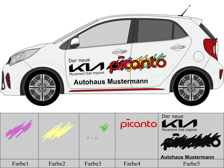 Die von uns verwendete Folie ist eine weiche PVC Folie für kurz bis mittelfristige Beschriftungen auf glatten und ebenen Untergründen ( ca. 2-4 Jahre)