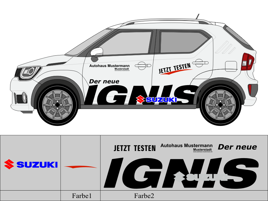 Die von uns verwendete Folie ist eine weiche PVC Folie für kurz bis mittelfristige Beschriftungen auf glatten und ebenen Untergründen ( ca. 2-4 Jahre)