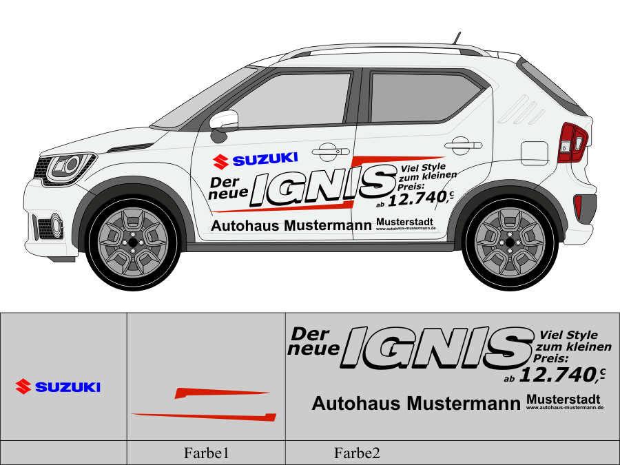 Die von uns verwendete Folie ist eine weiche PVC Folie für kurz bis mittelfristige Beschriftungen auf glatten und ebenen Untergründen ( ca. 2-4 Jahre)