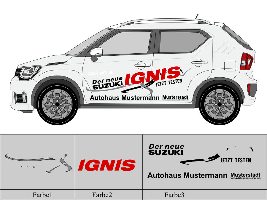 Die von uns verwendete Folie ist eine weiche PVC Folie für kurz bis mittelfristige Beschriftungen auf glatten und ebenen Untergründen ( ca. 2-4 Jahre)