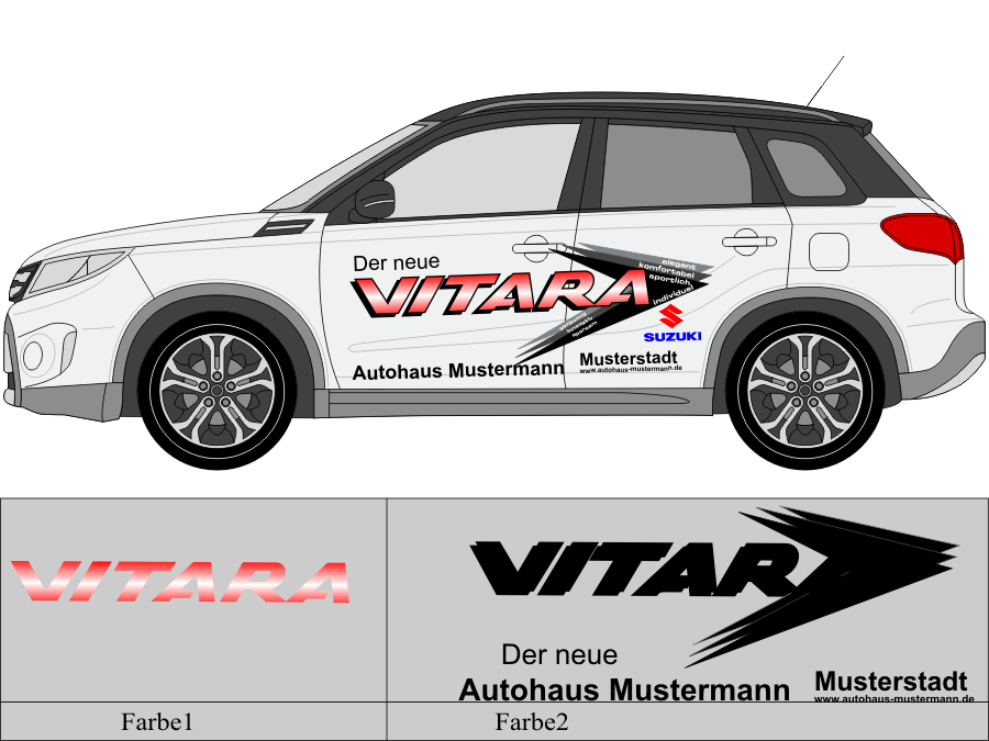 Die von uns verwendete Folie ist eine weiche PVC Folie für kurz bis mittelfristige Beschriftungen auf glatten und ebenen Untergründen ( ca. 2-4 Jahre)