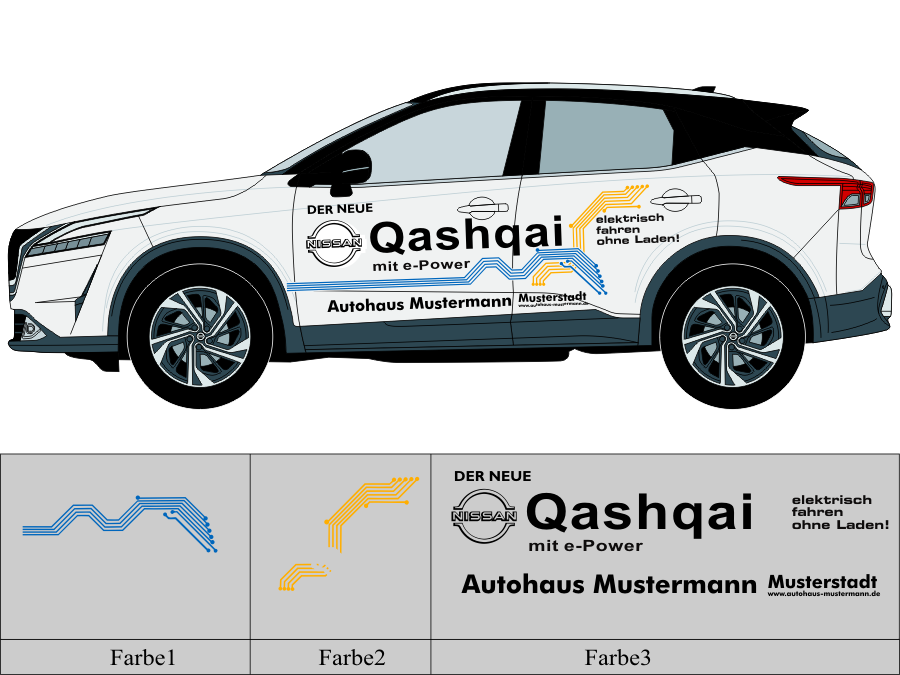 Die von uns verwendete Folie ist eine weiche PVC Folie für kurz bis mittelfristige Beschriftungen auf glatten und ebenen Untergründen ( ca. 2-4 Jahre)