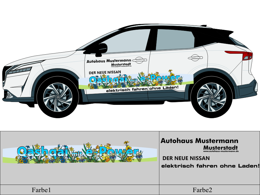 Die von uns verwendete Folie ist eine weiche PVC Folie für kurz bis mittelfristige Beschriftungen auf glatten und ebenen Untergründen ( ca. 2-4 Jahre)